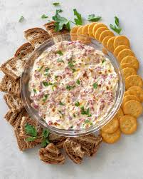 Creamy dip made with chopped corned beef, cream cheese, and green onions. Served warm or cold — great with crackers or rye bread.