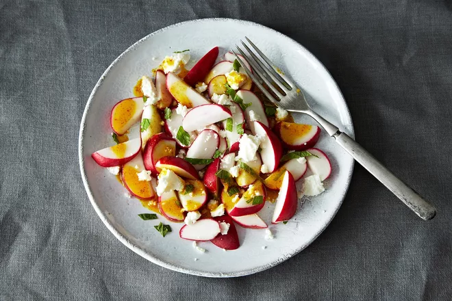 This is a variation on a salad I originally made with tomatoes. I decided to give it a whirl with crunchy radishes instead, and fell in love with the results....