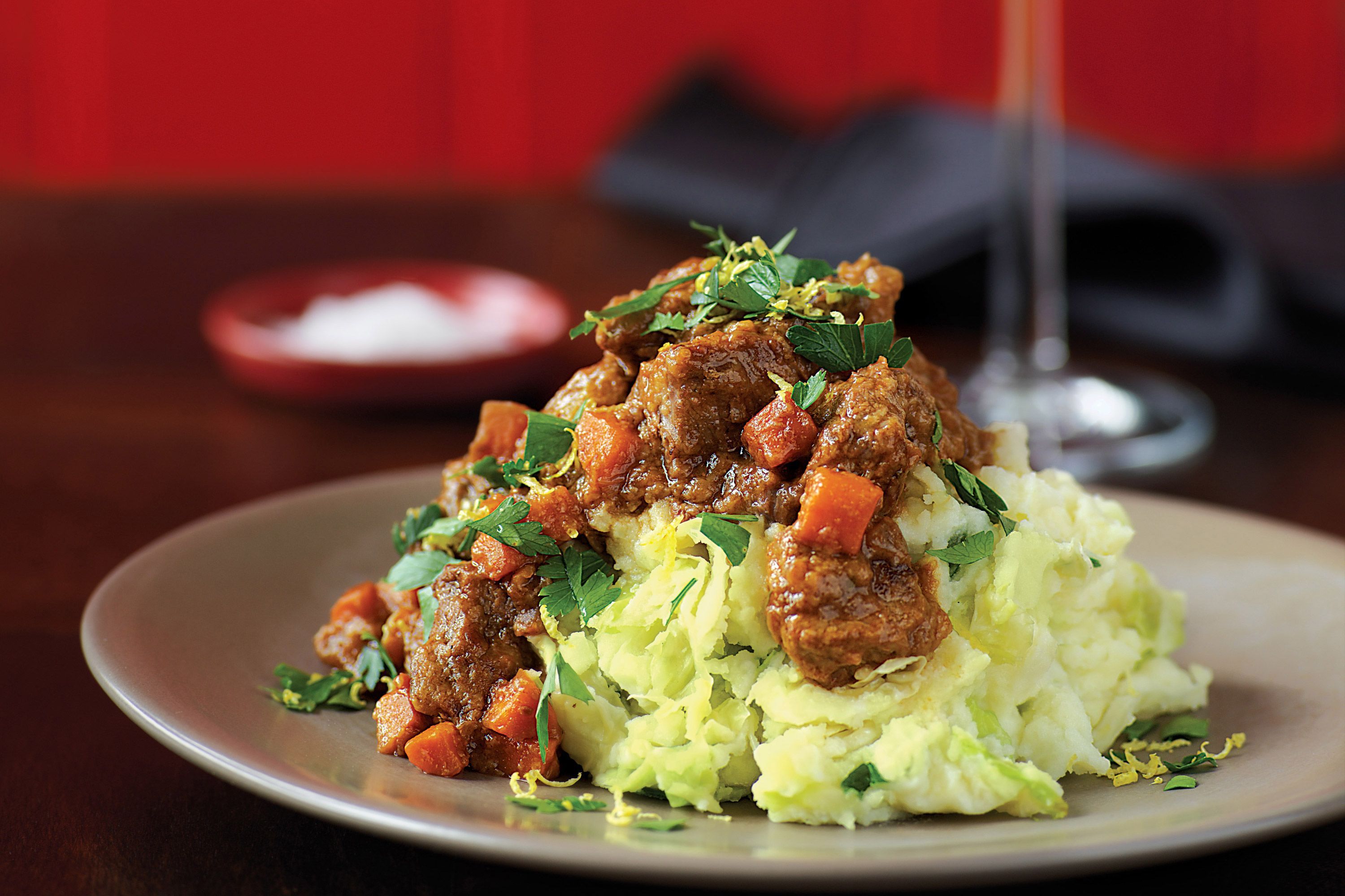 Read MoreTender beef or lamb braised in dark beer and served with creamy mashed potatoes and cabbage, combining two Irish comfort classics in one heartwarming dish.