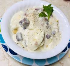 Chopped ham and scrambled eggs served in a creamy white sauce—comforting, rich, and ideal...
